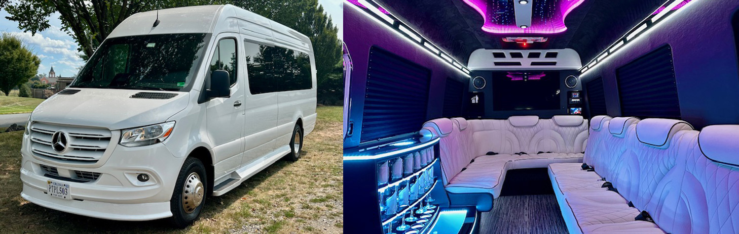 White Mercedes Sprinter Limo Bus